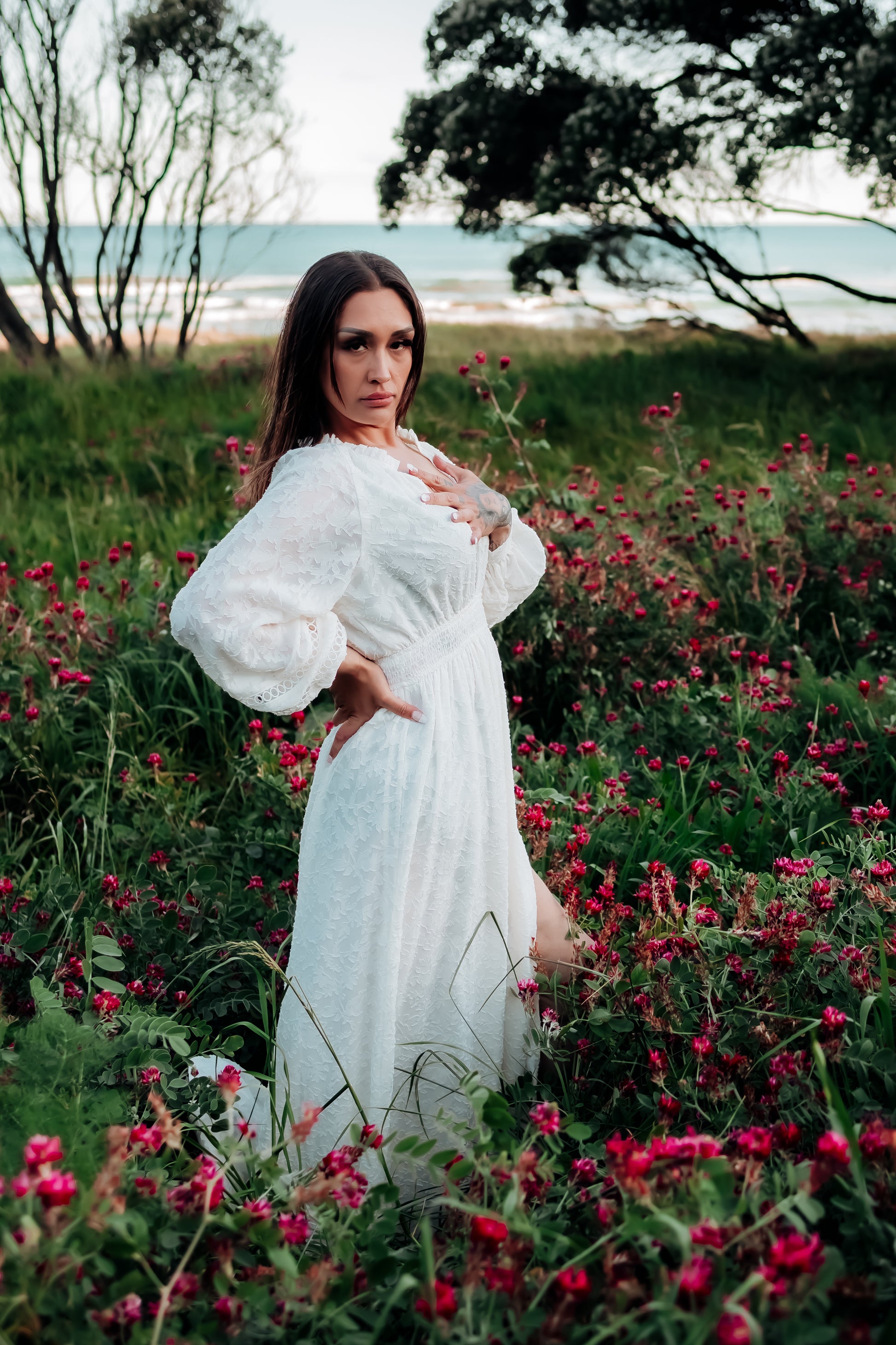 This is a gorgeous dress that flaunts full length raglan-bishop sleeves, with cotton trim accents and a stunning floral embroidery finish. This dress looks flattering and beautiful on all woman pregnant or not.